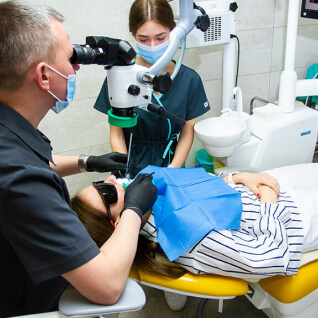 Мікроскоп допомагає знайти ранні стадії формування карієсу, побачити приховані каріозні ураження, знайти найменші тріщінки в зубах, роздивитись наявність додаткових каналів в коренях, допомагає при вилученні зламаних інструментів з кореневих каналів, полегшує їх розпломбування, та багато іншого. Діаметр кореневого каналу приблизно 1 мм. Мікроскоп дає збільшення в 25 разів. Зараз навіть не уявляю, як ми раніше справлялись зі складною ендодонтією (лікування кореневих каналів) без мікроскопа!